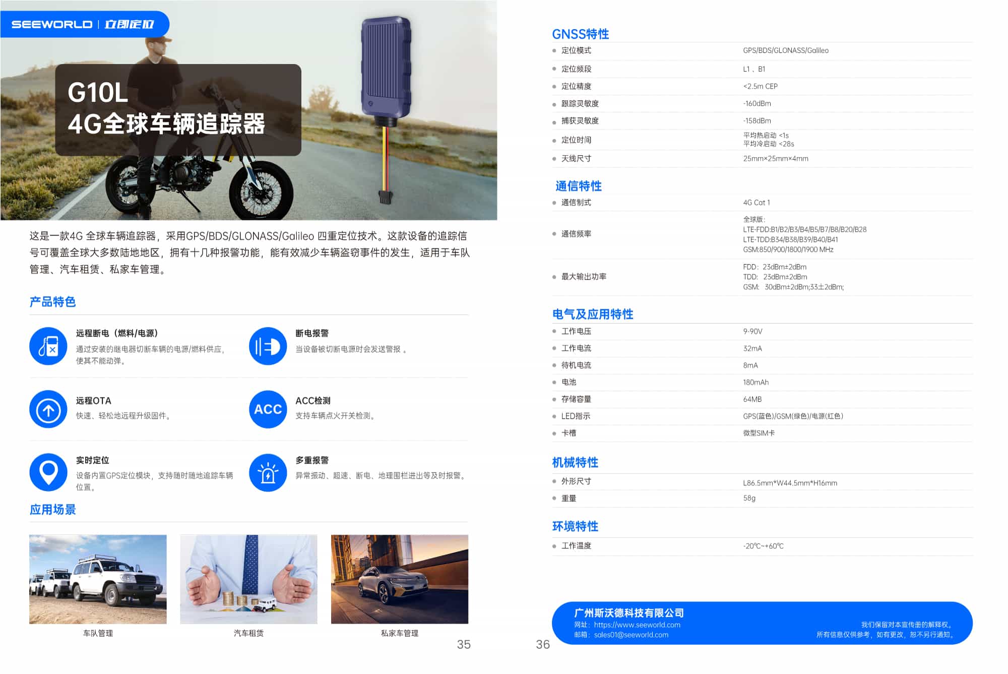 G10L是一款4G全球車輛定位器,采用GPS/BDS/GLONASS/Galileo四重定位技術。設備的追蹤信號可覆蓋全球大多數陸地地區,擁有十幾種報警功能,能有效減少車輛盜竊事件的發生,適用于車隊管理、汽車租賃、私家車管理場景。