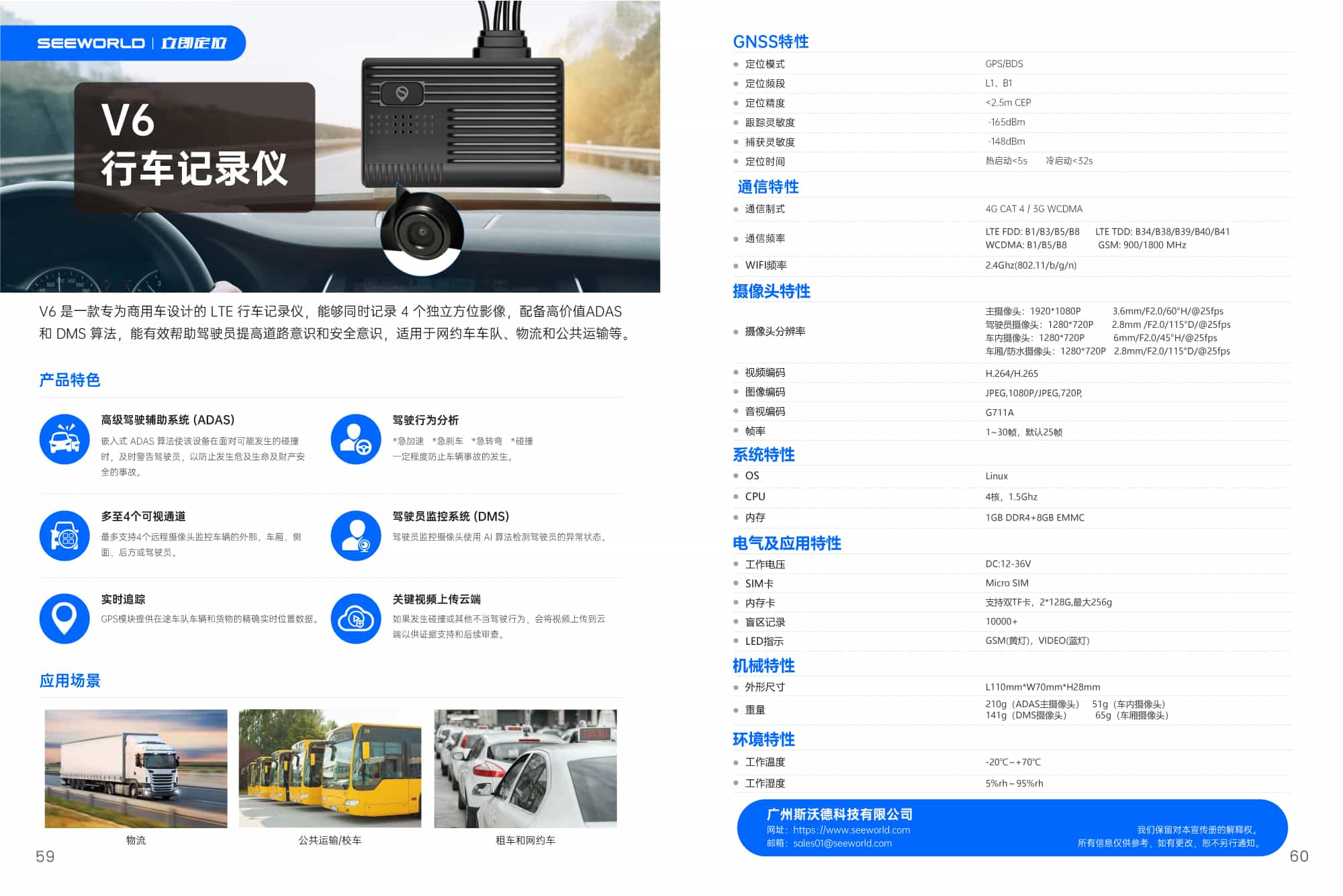 V6 是一款專為商用車設計的 LTE 行車記錄儀,能夠同時記錄 4個獨立方位影像,配備高價值ADAS和 DMS 算法,能有效幫助駕駛員提高道路意識和安全意識,適用于網約車車隊、物流和公共運輸等。